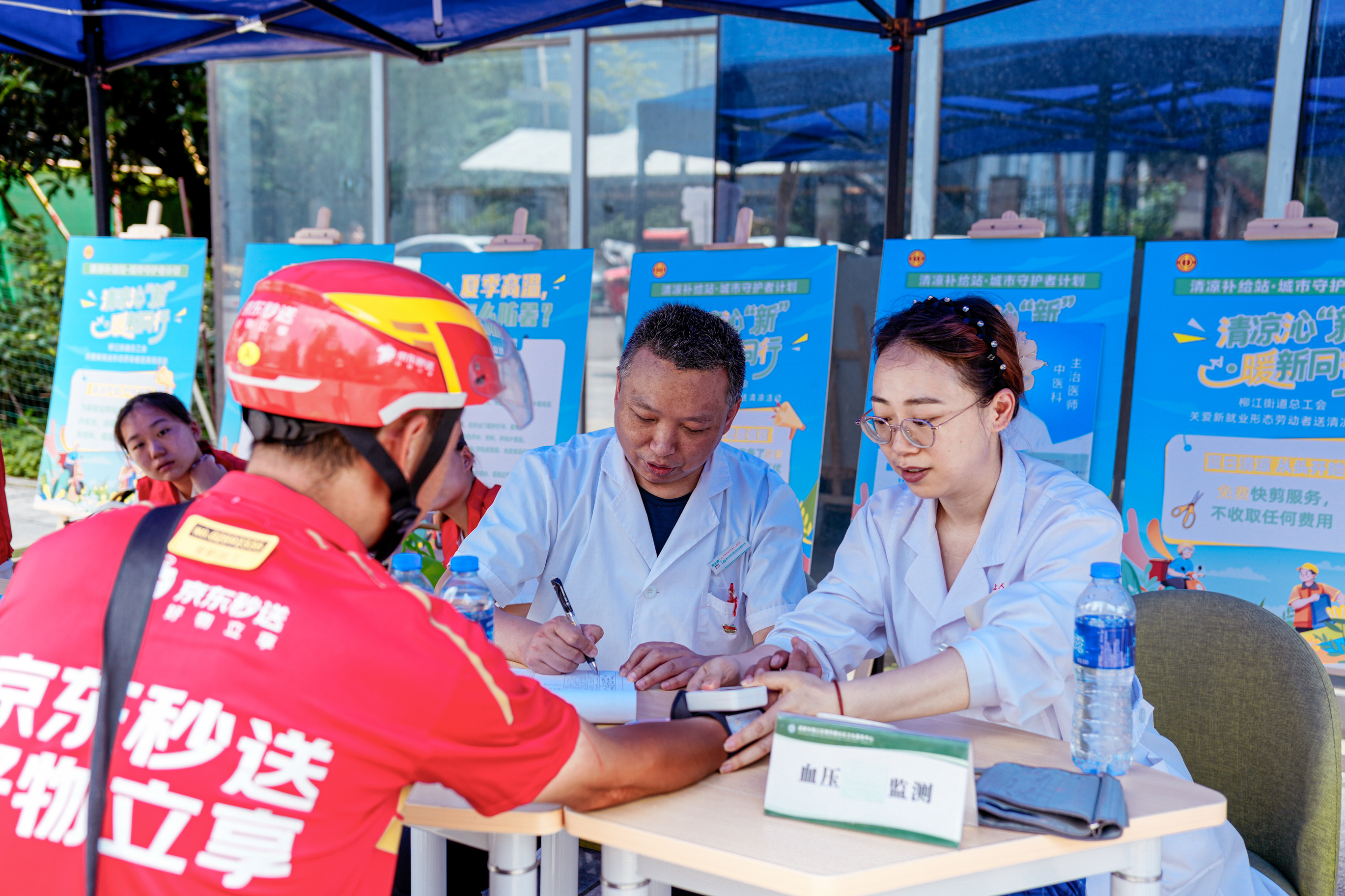 7 月 23 日至 25 日,成都市锦江区锦华路社区卫生服务中心将中医诊疗服务延伸至户外劳动者驿站,开展 “送清凉 + 送健康” 义诊活动,为新就业群体提供中医健康服务,推动中医文化在基层普及。