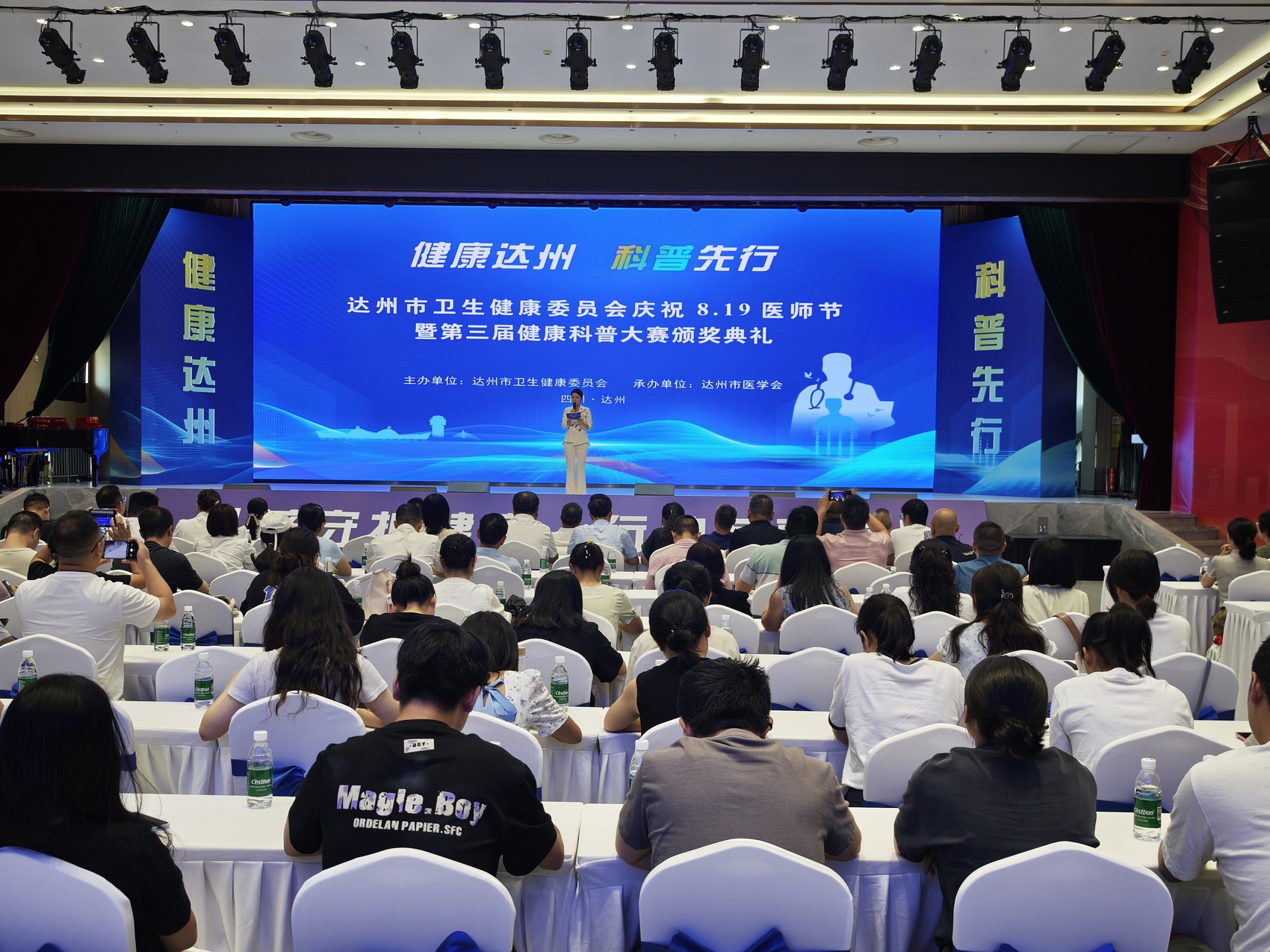 本报讯(记者 杨桅)8月18日,由达州市卫生健康委主办,达州市医学会承办的庆祝8.19医师节暨第三届健康科普大赛在达州市工人文化宫举行。活动以“健康达州 科普先行”为主题,通过演讲比赛、歌舞表演和颁奖仪式等形式,向广大医务工作者致以节日问候。