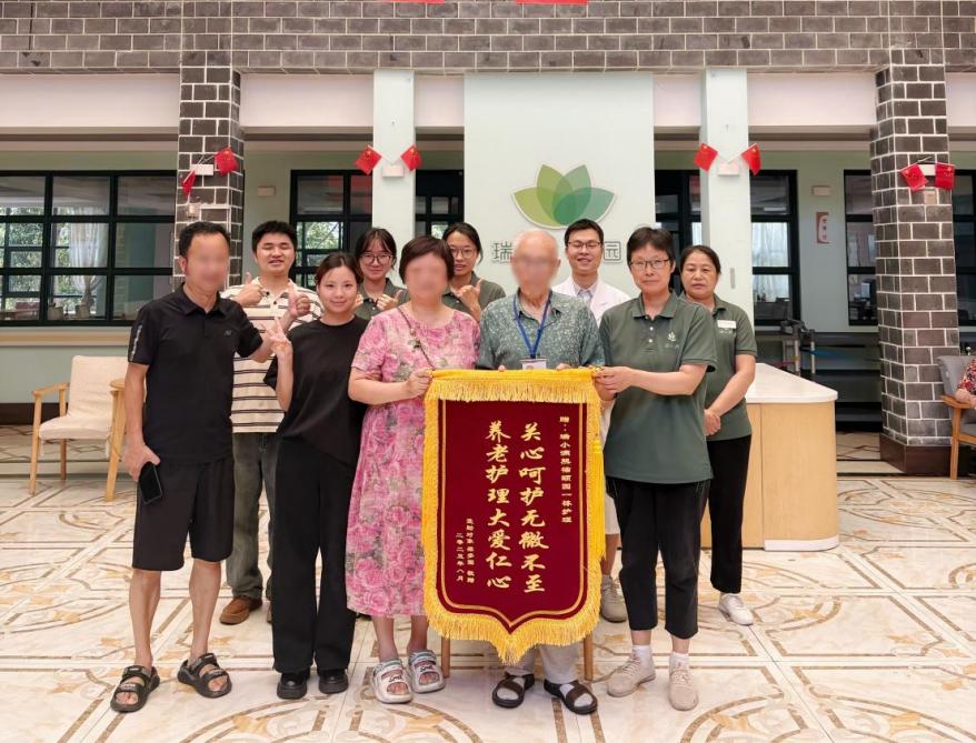 本报讯(记者 杨桅)8月16日,在成都瑞小满熊猫颐园(瑞小满康复医疗中心)上演了温馨的一幕。今年85岁的梁多国老人和家属,向养老院的医护工作人员送上一面锦旗“关心呵护无微不至 养老护理大爱仁心”,以此表达全家人的感谢之情。