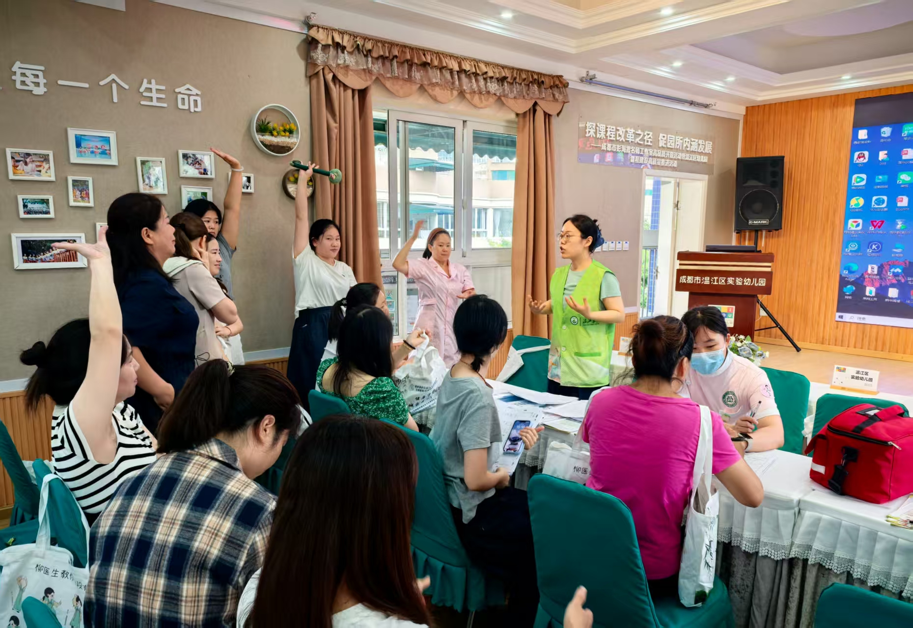 教师节来临之际,成都市温江区鱼凫家医柳城团队走进柳城实验幼儿园,将家庭医生签约服务与健康关爱送到老师们身边。刚下课的老师们围在健康咨询台前,有的咨询日常久坐引发的颈肩不适,有的询问换季时易反复的呼吸道问题,家庭医生们结合老师们的职业特点耐心解答,并针对性给出办公间隙拉伸、饮食调理等实用建议。