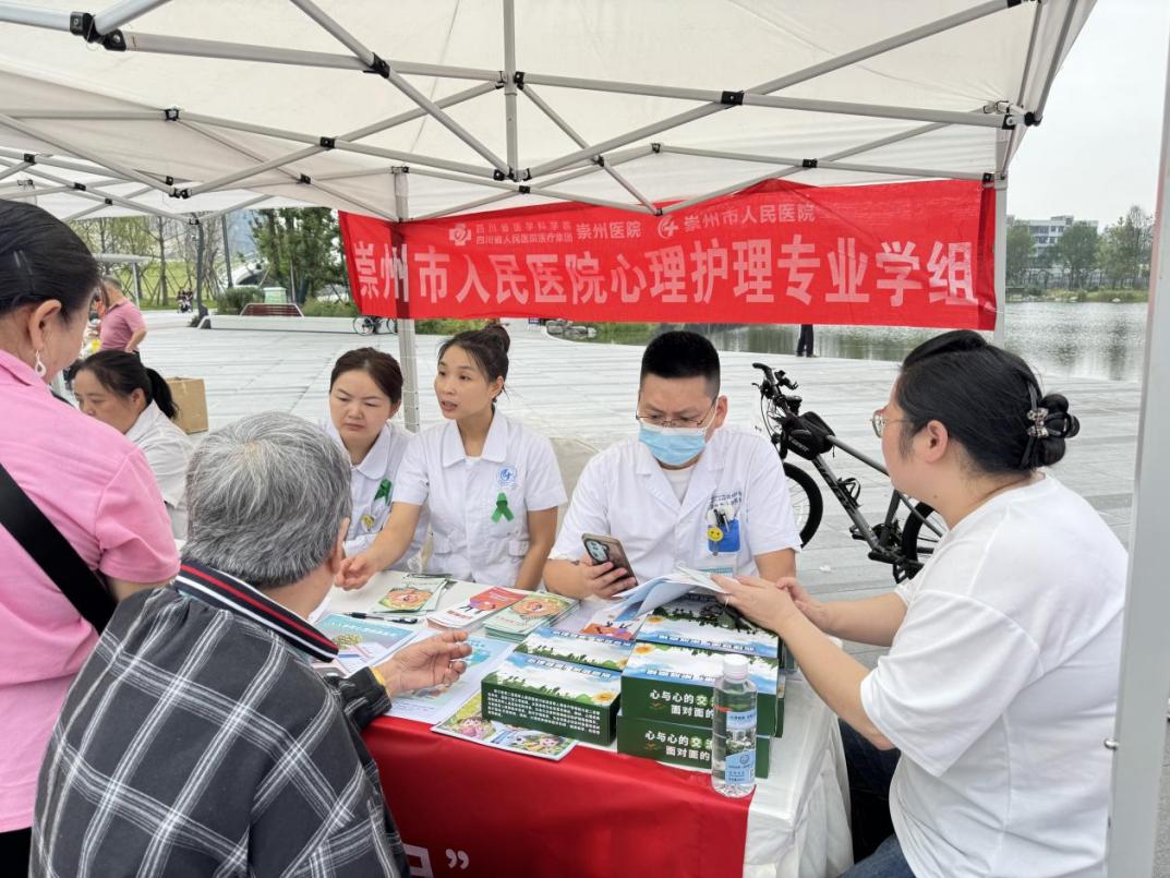 崇州市人民医院神经医学中心精神科医生邹健龙与医院心理护理学组成员为现场市民提供专业的心理健康咨询与情绪疏导服务。他们耐心倾听市民困惑,细致解答各类心理问题,并结合临床经验提供科学建议与健康指导,获得了群众的一致好评。