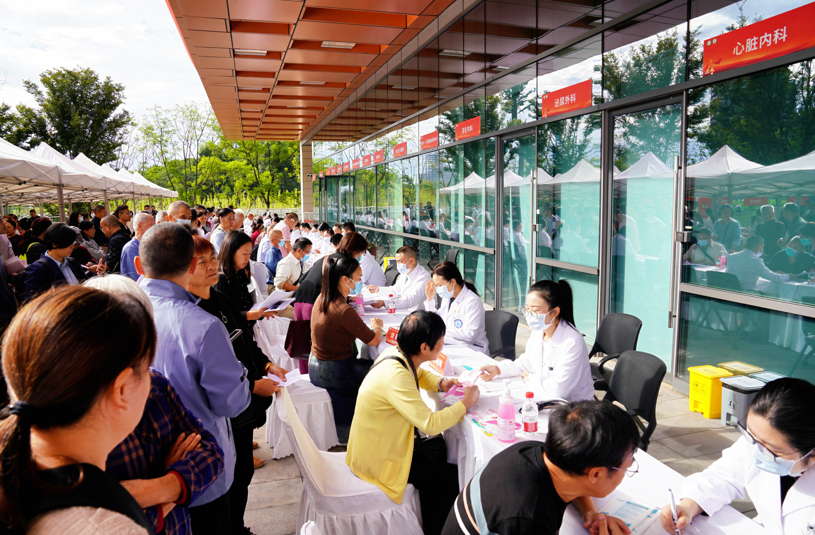 当天,在四川大学华西天府医院举行的开院4周年义诊活动中,该院携手医联体单位四川天府新区人民医院、党建“结对帮扶”单位四川泰康医院,23个科室的44名专家提供了近900个义诊号,为群众提供学科覆盖更全面、诊疗范围更广的健康服务。