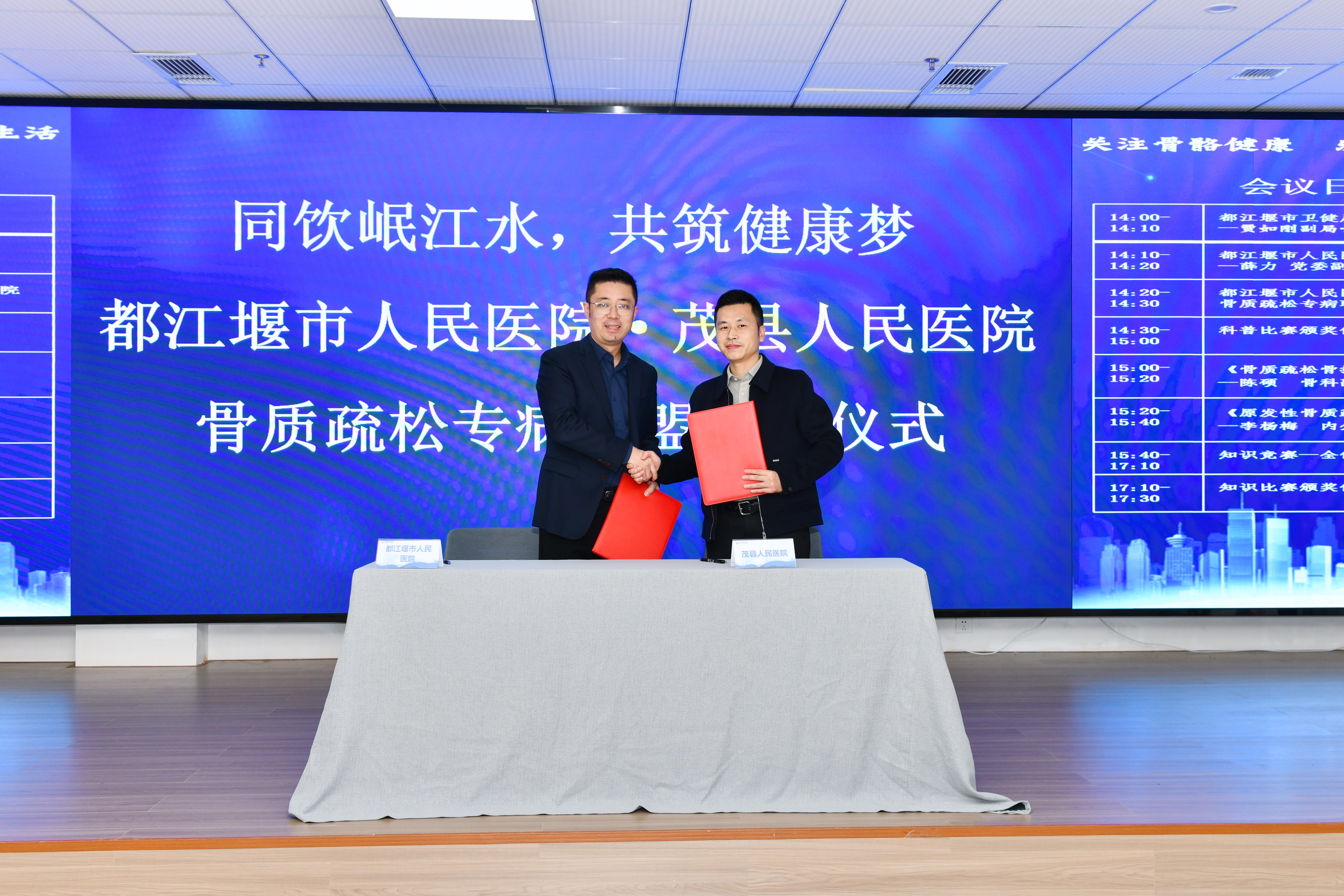 为系统化应对这一健康挑战,都江堰市人民医院探索构建了骨质疏松“全病程防治”体系,并积极推进区域专病联盟建设。薛力表示:“单靠一个医院的力量是不够的,我们正推动专病联盟从都江堰扩展至阿坝州,一站一站扎实推进。”活动期间,茂县人民医院与都江堰市人民医院签订专病联盟协议,推动体系化防治模式在更大范围落地。