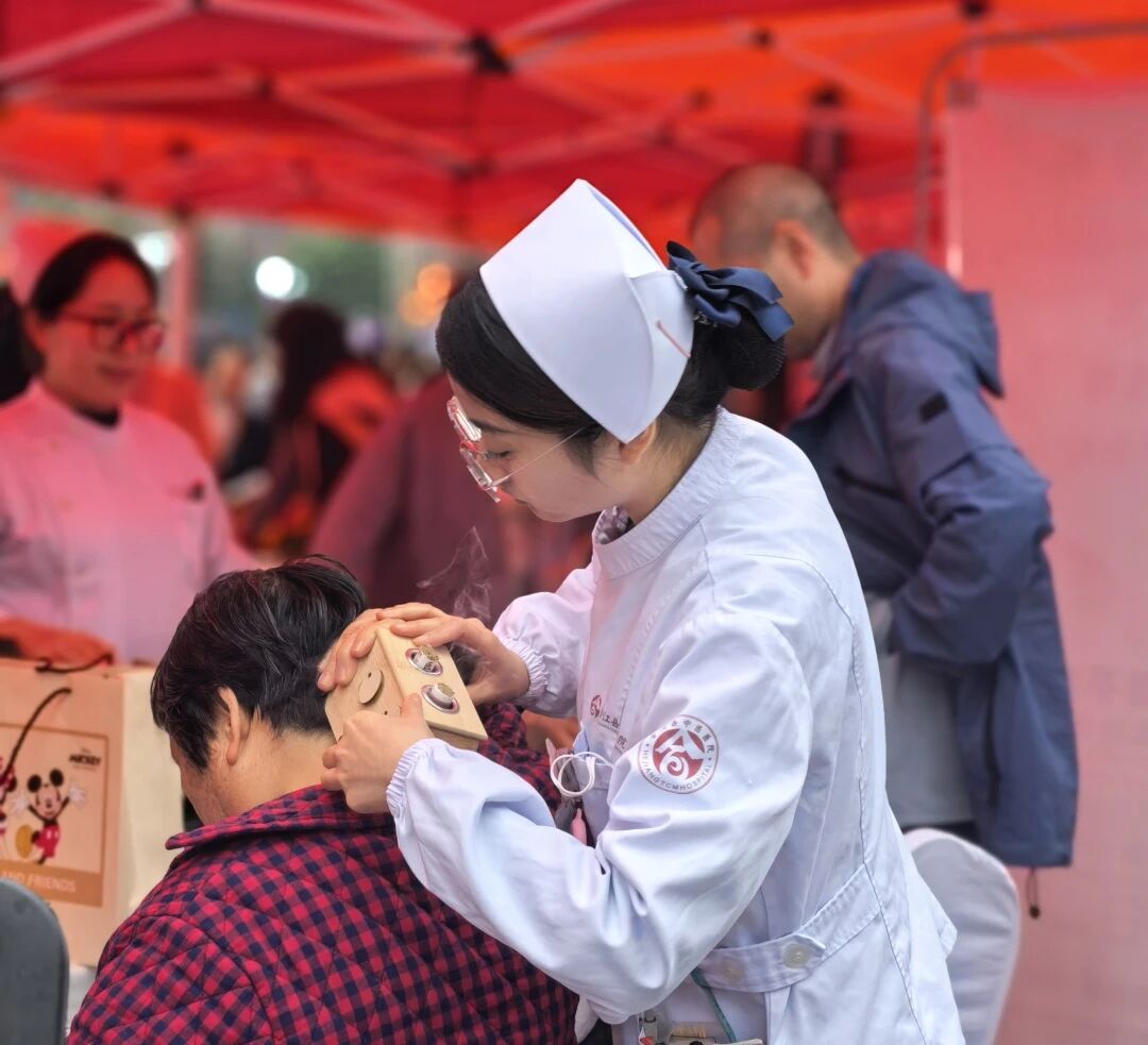 艾灸区的袅袅青烟带着淡淡药香,刮痧板在肌肤上留下红晕……这些曾经只在诊室里见到的中医外治疗法,如今直观地展现在公众面前。