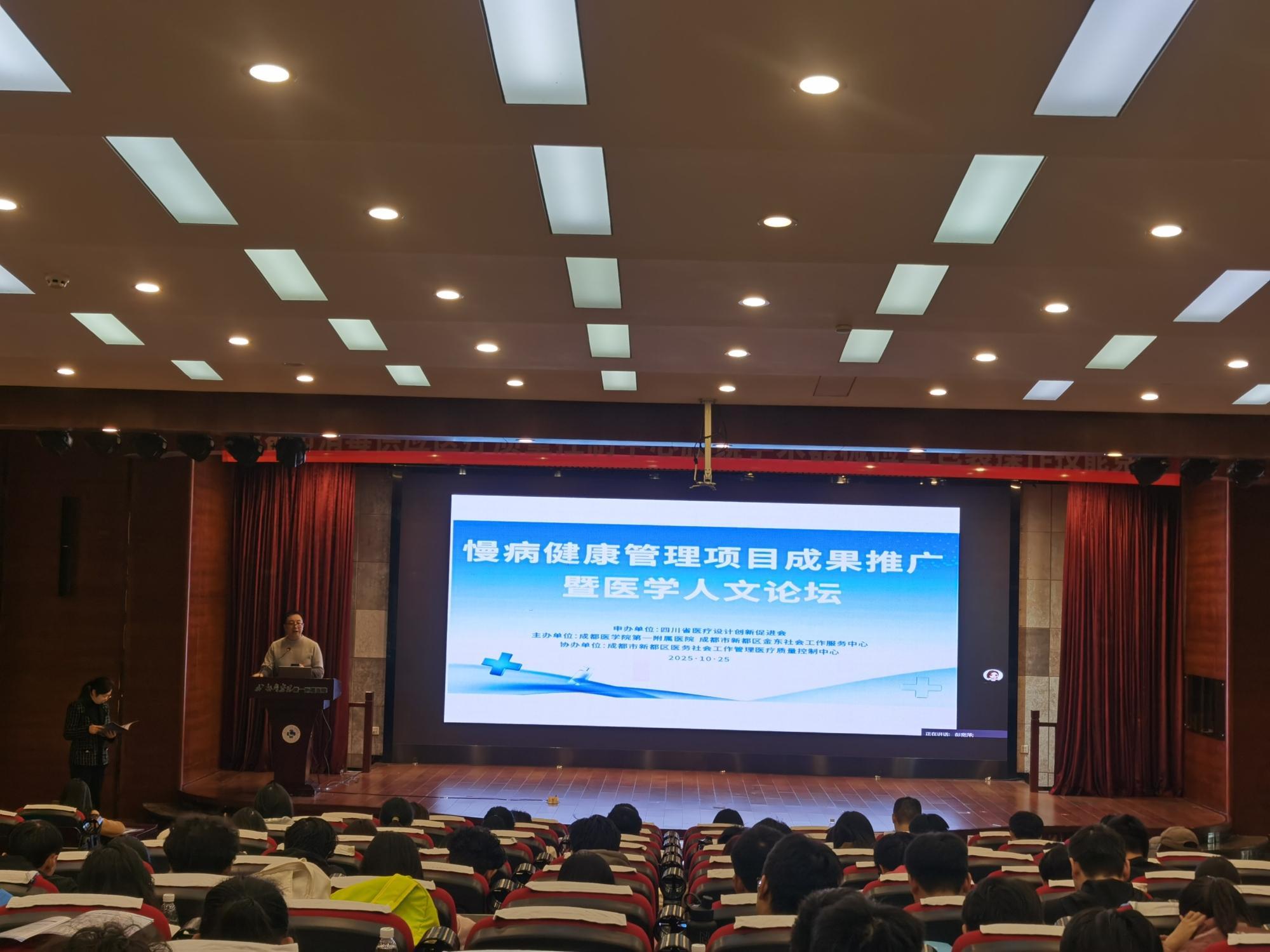 为全面推进健康中国战略落地,深化慢病健康管理项目成果转化,切实筑牢医学人文服务根基,近日,四川省慢病健康管理项目成果推广暨医学人文论坛在成都医学院第一附属医院举行。本次会议由四川省医疗设计创新促进会申办,成都医学院第一附属医院与成都市新都区金东社会工作服务中心联合主办,成都市新都区医务社会工作管理医疗质量控制中心协办,会议由成都医学院第一附属医院红十字会副会长、秘书长王新主持。