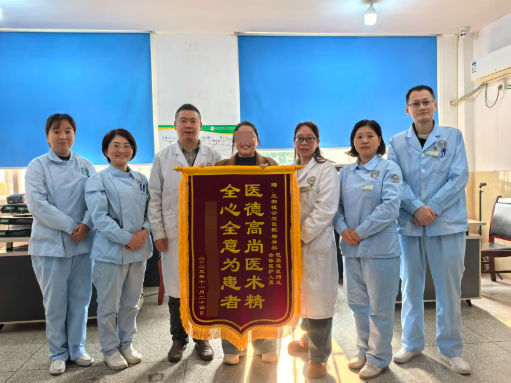 冬日的一缕暖阳,透过明净的窗户,温柔地洒进医生办公室,恰如一份不期而遇的温暖,驱散着严寒。11月24日,在这片暖意融融中,大邑县王泗公立卫生院精神科上演了温馨感人的一幕:红彤彤的锦旗上,金色的字句不仅代表着患者家属的由衷谢意,更诉说着一段关于信任、坚守与治愈的动人故事。