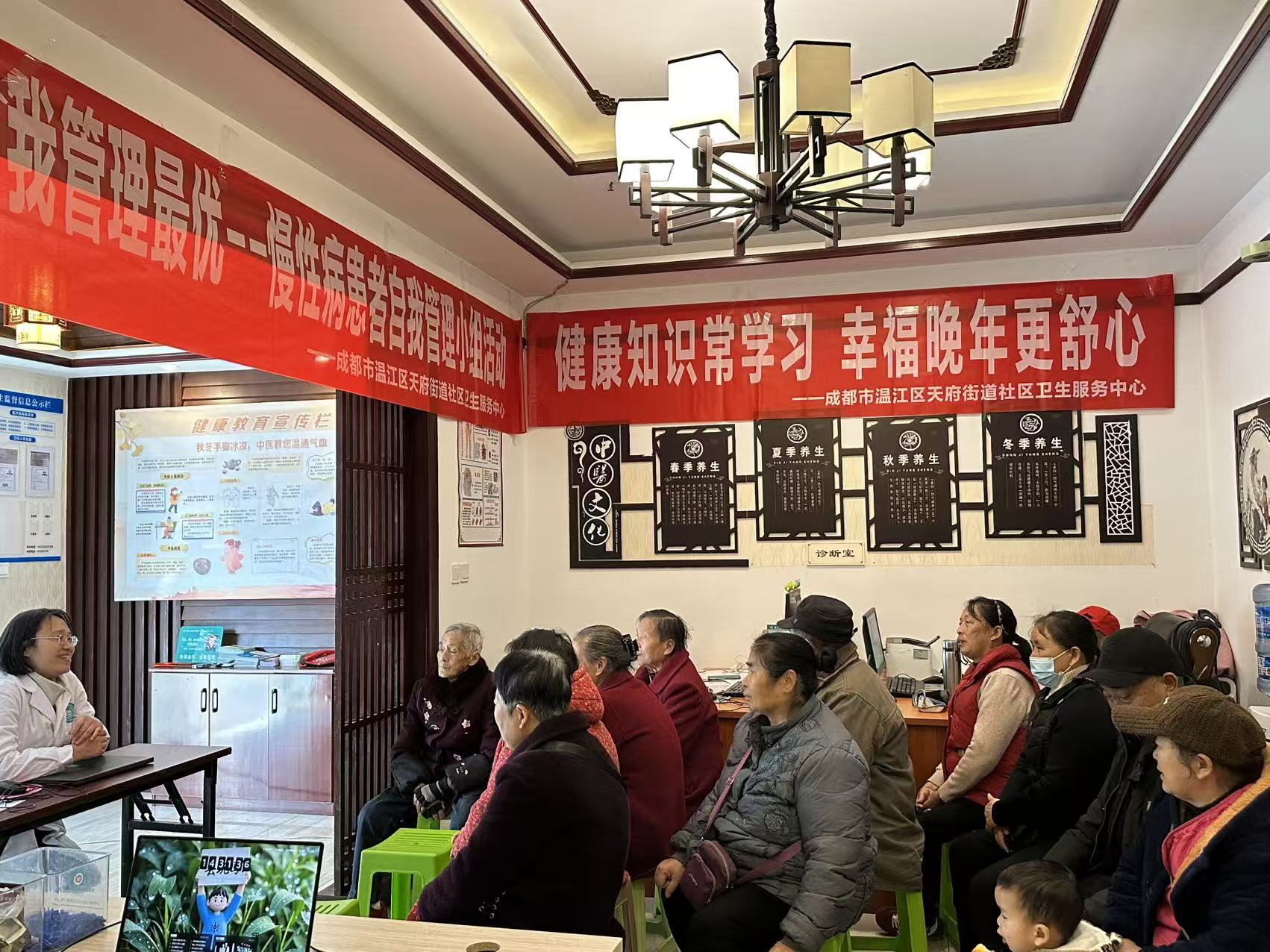 11月27日,成都市温江区学府社区一卫生室内暖意融融,“小课堂大健康”系列讲堂如期开讲。20余位居民围坐一堂,迫切希望在医生的专业讲解中解开日常用药困惑,为日常健康管理筑牢“防护墙”。