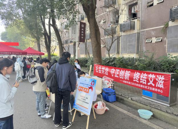 在第38个“世界艾滋病日”来临之际,为积极响应国家“社会共治,守正创新,终结艾滋”的宣传号召,切实筑牢青年学生健康防护屏障,11月28日,成都市温江区天府街道社区卫生服务中心携手共青团四川省委、四川省疾病预防控制局等,在某高校内开展了一场内容丰富的艾滋病防治主题宣传活动,将科学防艾知识精准送达青年学子身边,为青春健康保驾护航。