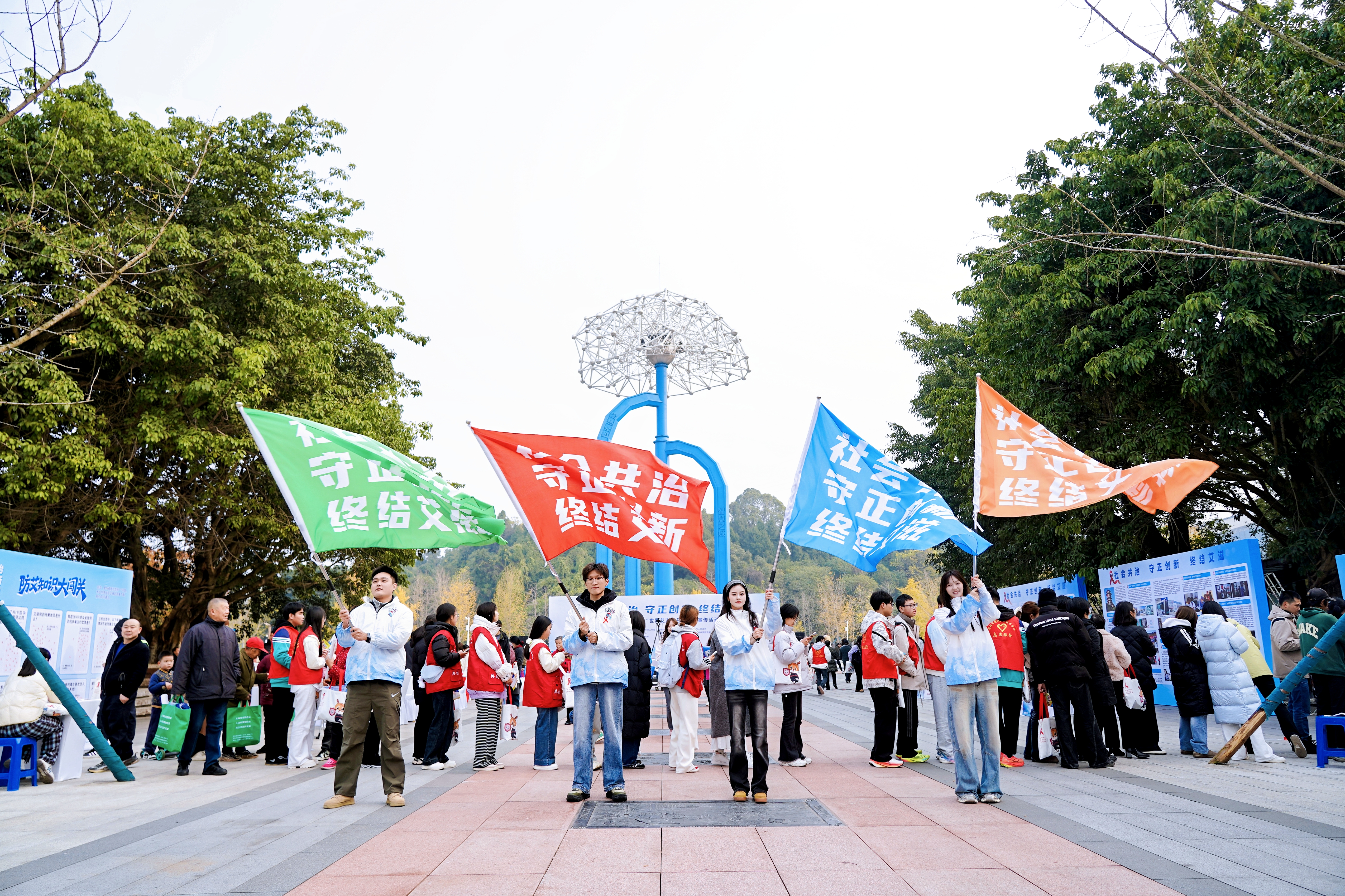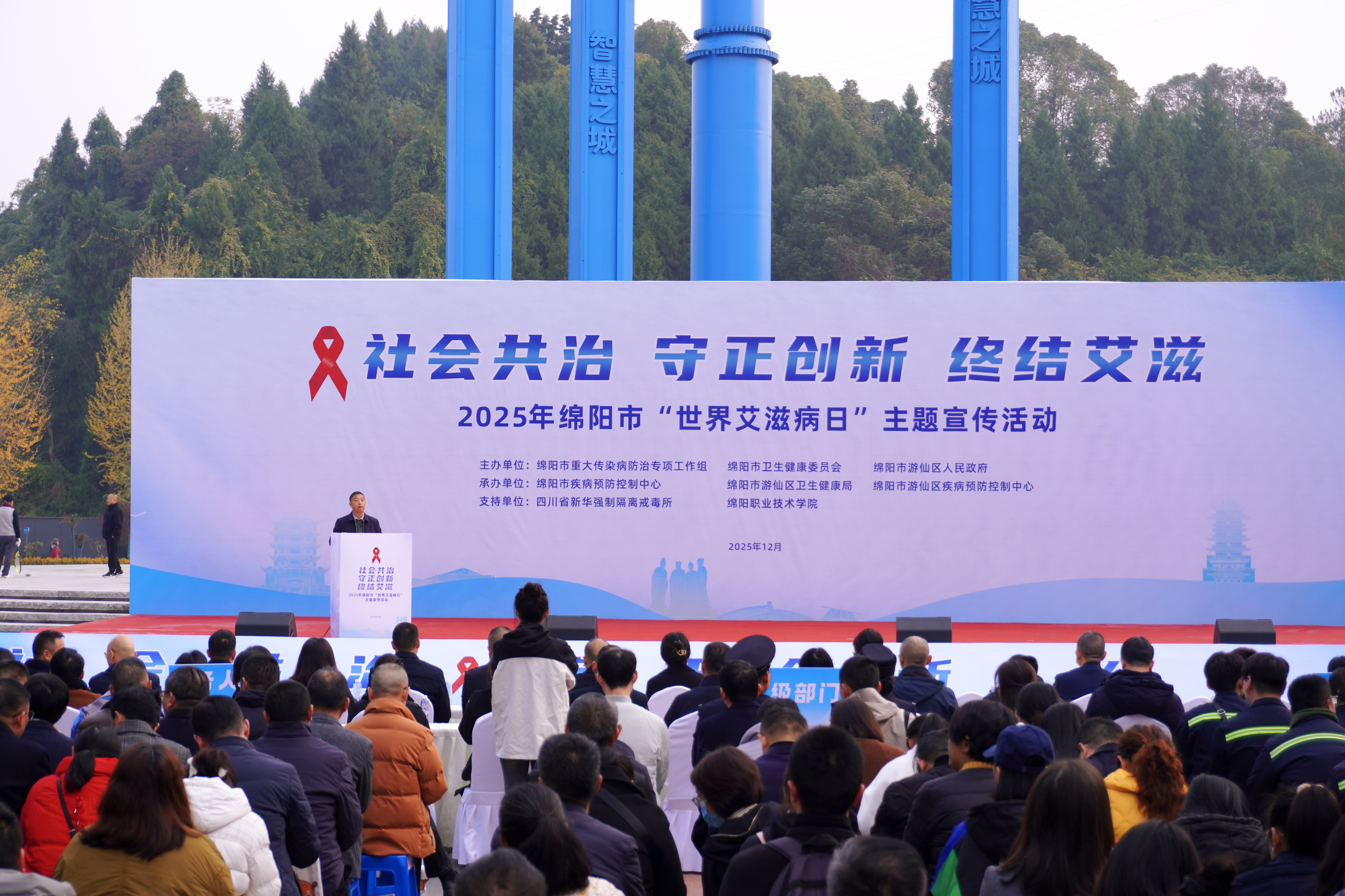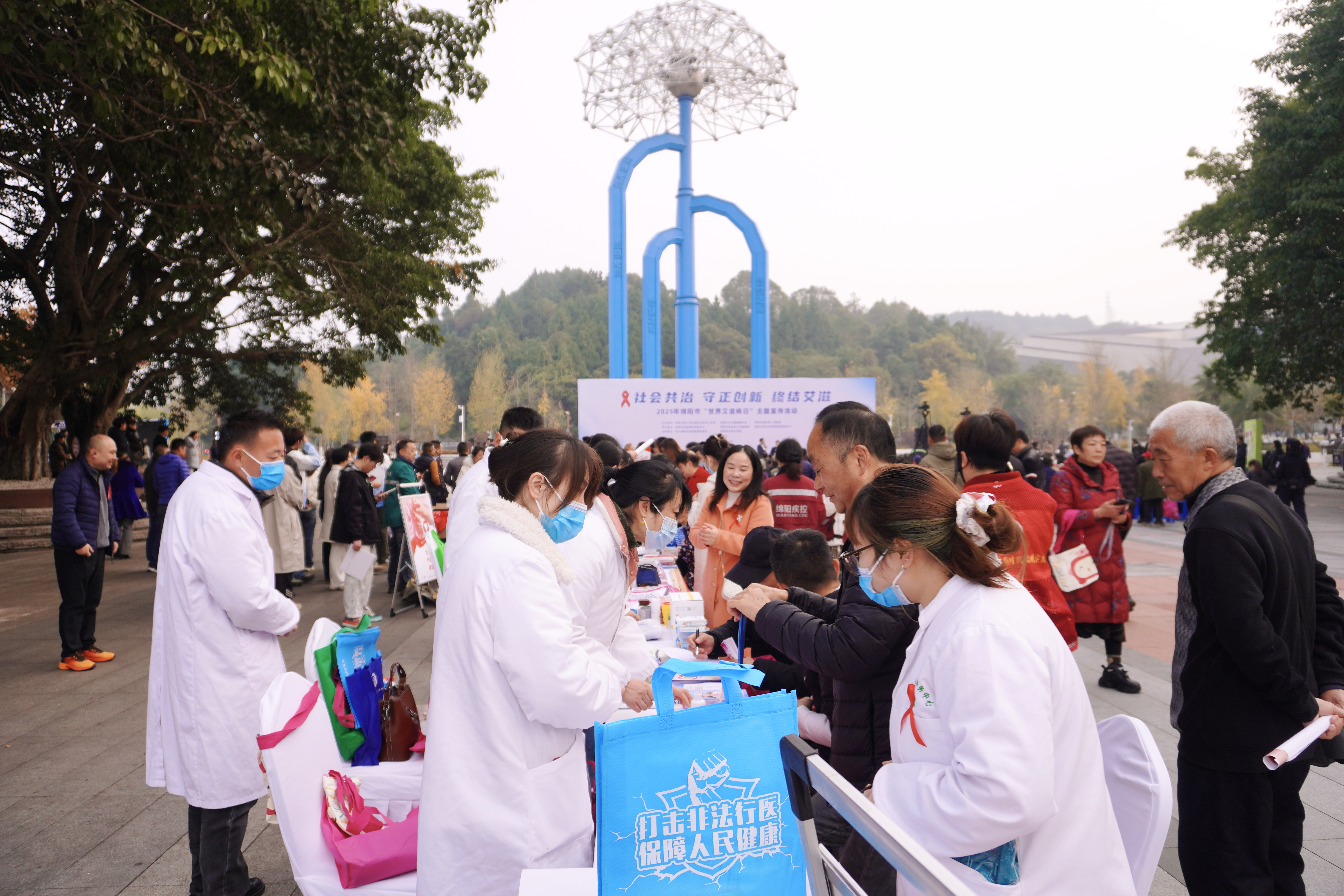 12月1日,绵阳市在游仙区科学家公园举办了第38个“世界艾滋病日”主题宣传活动。市、区相关部门以及医务人员、志愿者、企业和居民代表等400余人参加。现场通过成果展板、专家义诊、互动体验等多种形式,广泛普及艾滋病防治知识,宣传主动检测与综合干预的重要性,呼吁社会各界携手参与,共同营造包容关爱的健康环境,形成全民防艾、共抗艾滋的良好氛围。