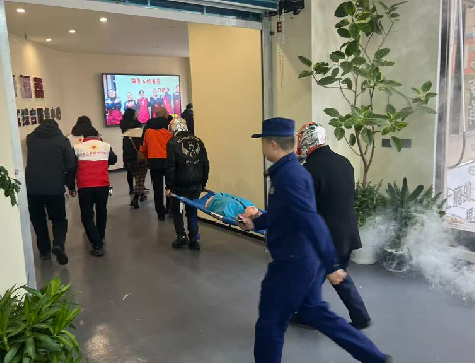 12月10日,合江县红十字会联合消防救援大队、符阳街道在荔城社区幸福荔综合服务中心组织开展火灾应急救护实战演练。