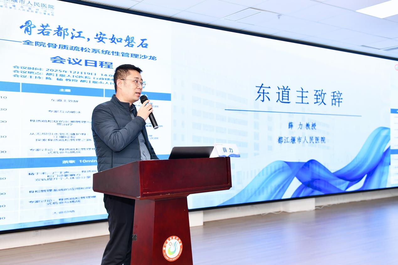 论坛在都江堰市人民医院党委副书记、院长薛力的欢迎致辞中拉开序幕。薛力对远道而来的专家学者表示诚挚感谢,并强调在“健康中国”战略引领下,构建多学科协同、全流程管理的骨质疏松防治体系,是提升区域健康服务水平、应对人口老龄化挑战的必然选择。