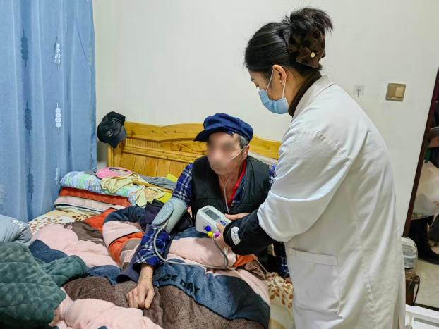 慢阻肺患者熊大爷长期居家氧疗,就医非常不方便。家庭医生团队上门健康检查后,细致核查吸氧设备情况,向家属解读体检结果并叮嘱做好病情管理、用药监测等注意事项。