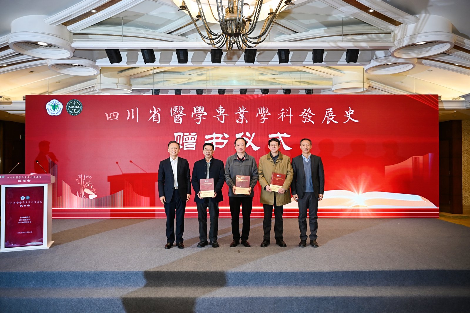 发布会上,举行了新书揭幕及赠书仪式。据悉,该系列丛书后续辑册的编纂工作正高效推进,计划于2027年学会百年庆典前全部出版,最终形成一部完整记录四川医学学科发展的书籍,为建设“健康四川”、助力“健康中国” 贡献深厚的文化力量。