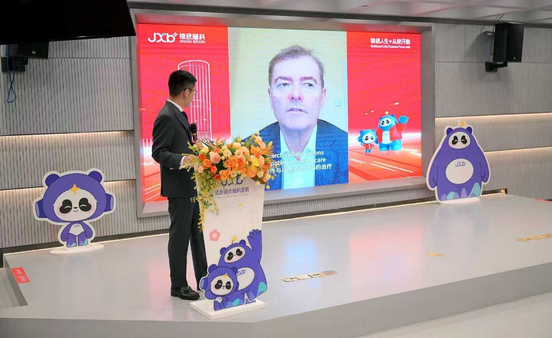 锦欣医疗集团董事、总经理吕蓉表示,医院落成离不开多方支持,未来将以高标准打造现代化脑科医院,争做全国脑部疾病治疗技术前沿标杆。邱昌建教授、李为民教授等业内专家先后致辞,肯定了医院聚焦脑科核心领域、深耕脑机接口临床转化的精准定位,期望医院以创新突破推动技术落地,让前沿医疗成果惠及更多患者,助力行业高质量发展。远在德国的全球顶级睡眠医学专家英戈·费策教授也特意发来祝福,传递对医院发展的殷切期许。