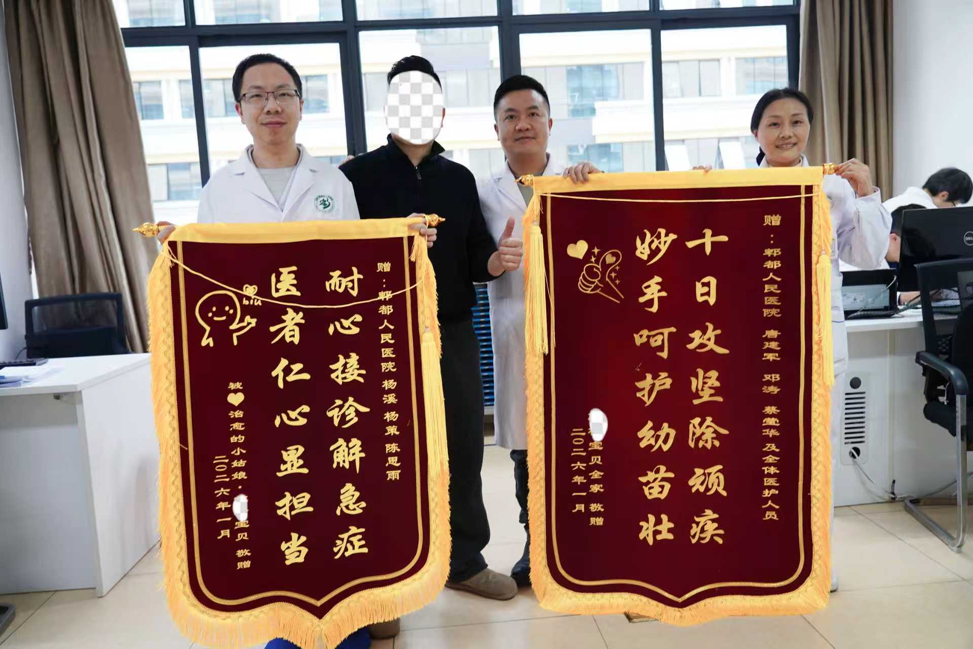 近日,成都市郫都区人民医院儿科病房上演了一幕暖心场景。重症肺炎患儿康复出院,家属手持两面充满感激话语的锦旗,紧紧握住儿科医护人员的手再三致谢,这一份双向奔赴的医患情,为凛冽寒冬注入了滚烫暖意。