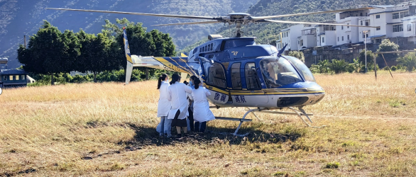 开通航空救援航线,搭建“空中生命线”,刻不容缓!然而,航空救援是一项涉及多领域协作的系统工程,搭建“空中生命线”并非易事。仅航空救援起降点的选址,就需倾注巨大心力。攀钢总医院健康服务部部长余洪至今记得那段踏遍千山万水的日子:每天早晨八点出发,与航空公司专业人员深入盐源、米易、会理、会东、永仁等地区,只为在群山峻岭间,寻得一处能够承载直升机安稳起降的开阔地。