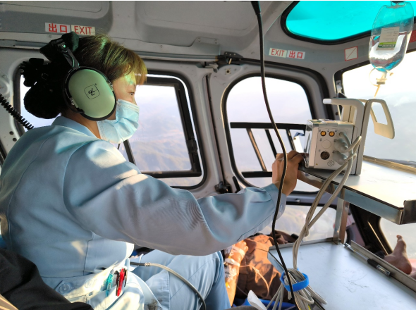 2024年3月23日,急诊科护士王春华途中密切监测患者生命体征。