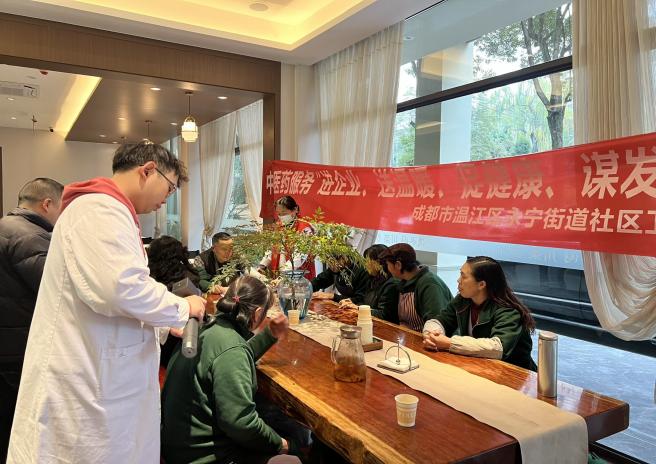 近日,成都市温江区永宁街道社区卫生服务中心走进辖区“活水园餐馆”,开展中医药服务“进企业、送温暖、促健康、谋发展”主题系列活动。
