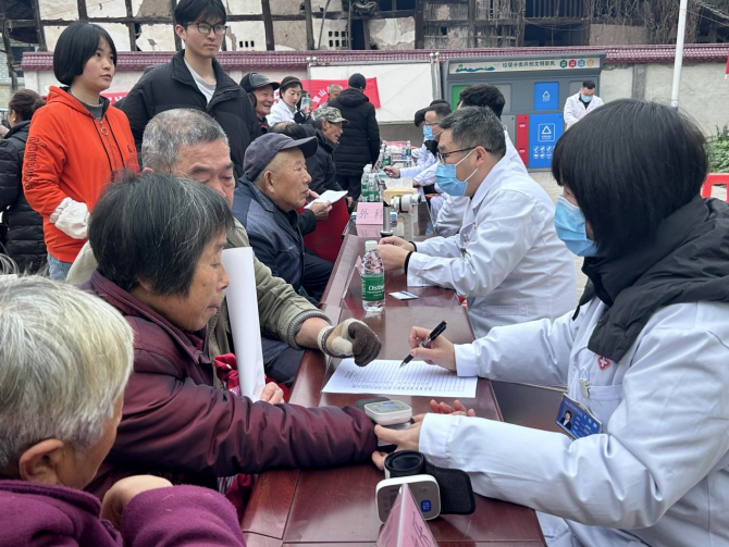 “婆婆,您血压有点偏高,平时吃的药带了吗?给我看看。”心血管内科主任黄洪一边为78岁的陈婆婆测量血压,一边仔细询问。陈婆婆的儿子在外务工,今年提前回家过年,听说有医生来义诊,特意陪母亲过来。“不用带着老人折腾去城里,在家门口就把病看了,过年心里都踏实不少。”他笑着说。