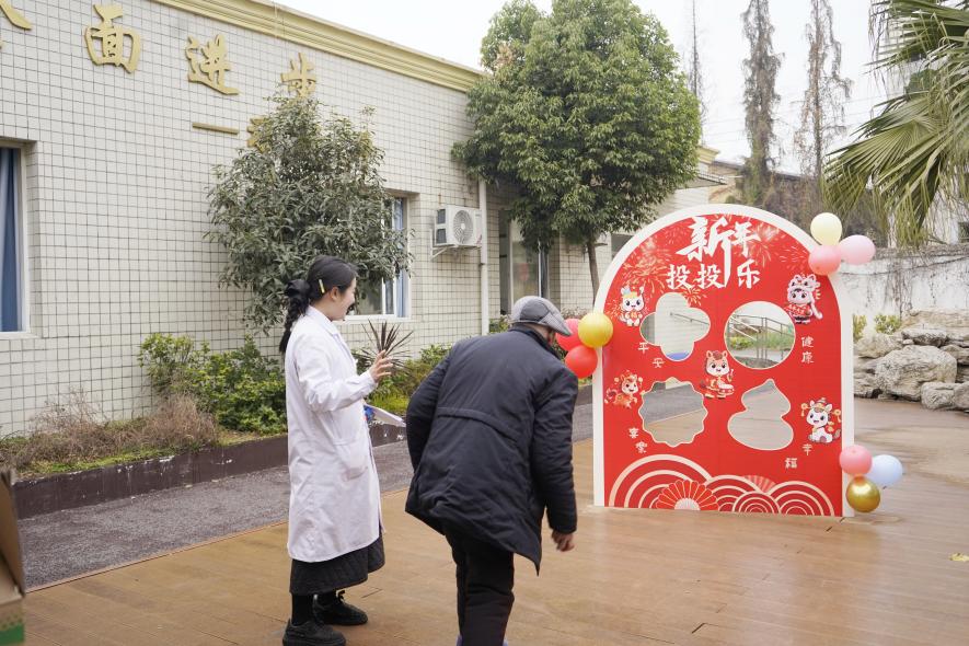 医务人员特地为老人们准备了游戏。在“新年投投乐”的游戏区喝彩声不断,老人们仿佛回到了童年,手持沙包,认真瞄准,每一次投掷都牵动着围观家属的心。命中目标时的击掌欢呼,有偏差时的鼓励安慰,都让现场气氛持续升温,象征着“步步红运”的红袜子、寓意“温暖环绕”的红围巾,以及实用的牙刷、毛巾,每一份奖品都承载着新年的美好祝愿,更传递着家园对老人们健康生活的关心关怀。