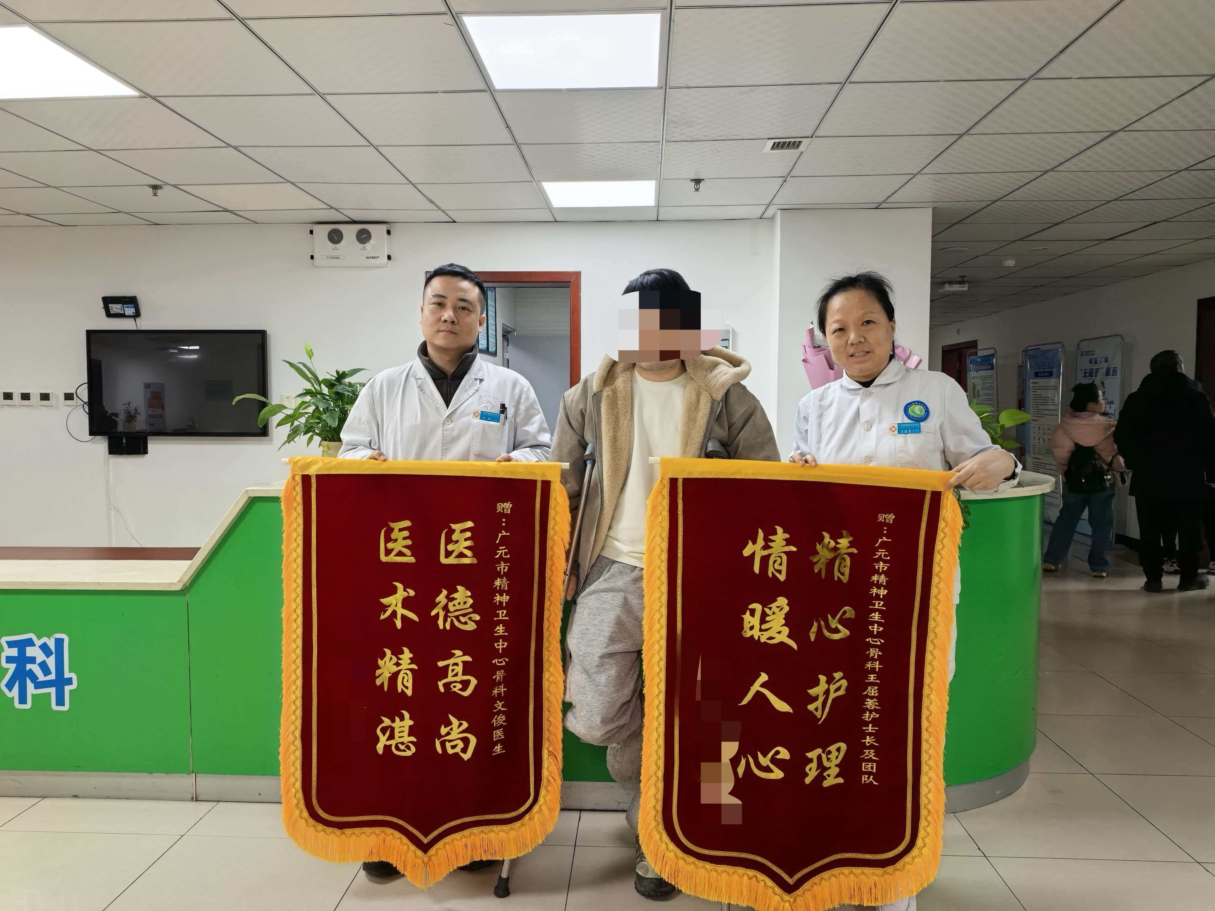 春节期间,广元市第三人民医院骨科收到两份特殊的新春祝福。康复患者张某、韩某专程来到科室,送上两面致谢锦旗,向坚守一线的医护人员表达节日祝福与诚挚谢意。