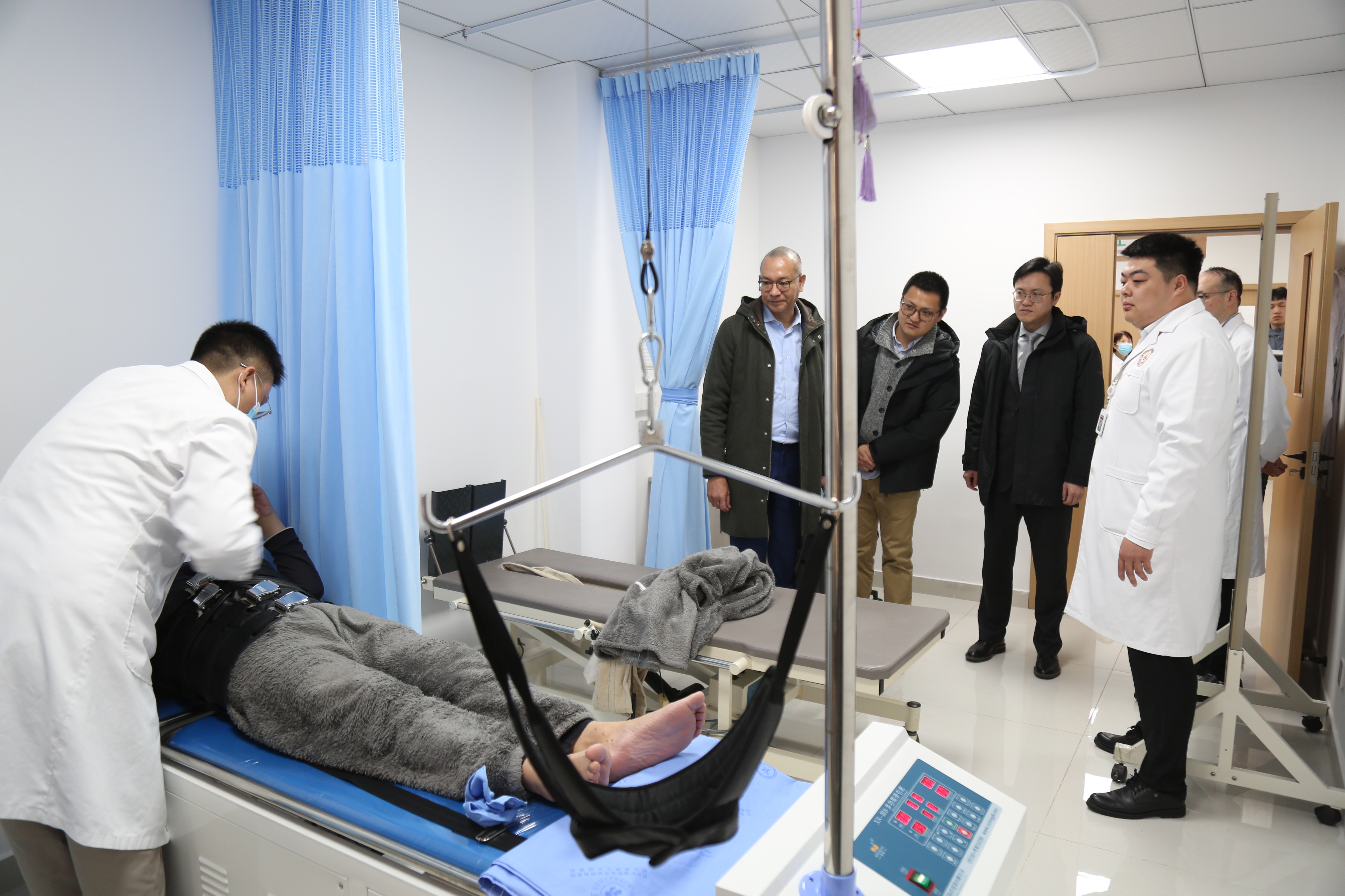 代表团先后走访省三院航天社区卫生服务中心、康复医学科等点位,重点了解中医药特色诊疗与康复服务,以及超声引导可视化治疗、中医整脊等特色项目,详细考察了针对老年慢性病、骨关节疾病及脑卒中后遗症患者的一站式康复服务模式。