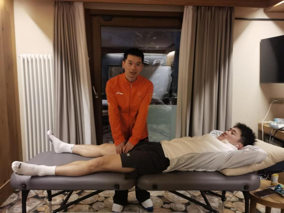 备战训练阶段,选手王心迪曾出现腰部劳损问题,江继君主治医师第一时间为其开展专业检查与诊疗,充分发挥医院特色郑氏伤科治疗优势,融合针灸、运动疗法等传统与现代康复手段,精准缓解其伤病症状,有效保障了训练的连续性与有效性,让选手以最佳身体状态投入冬奥备战。赛场之下,保障从未缺位,游亮亮康复治疗师始终坚守岗位,在王心迪、李天马等队员每日训练结束后,及时为其开展全身肌肉放松理疗,通过专业的康复手法快速缓解运动疲劳、调节身体机能,让队员在高强度训练中有效规避运动损伤,始终保持良好的竞技状态。