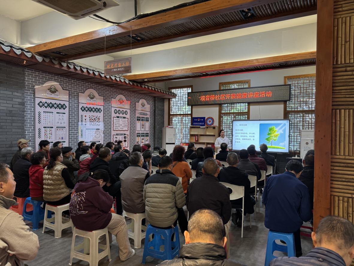 近日,成都市锦江区龙舟路社区卫生服务中心联合观音桥社区,举办“健康养生之10个简单养生小动作”主题健康讲座。
