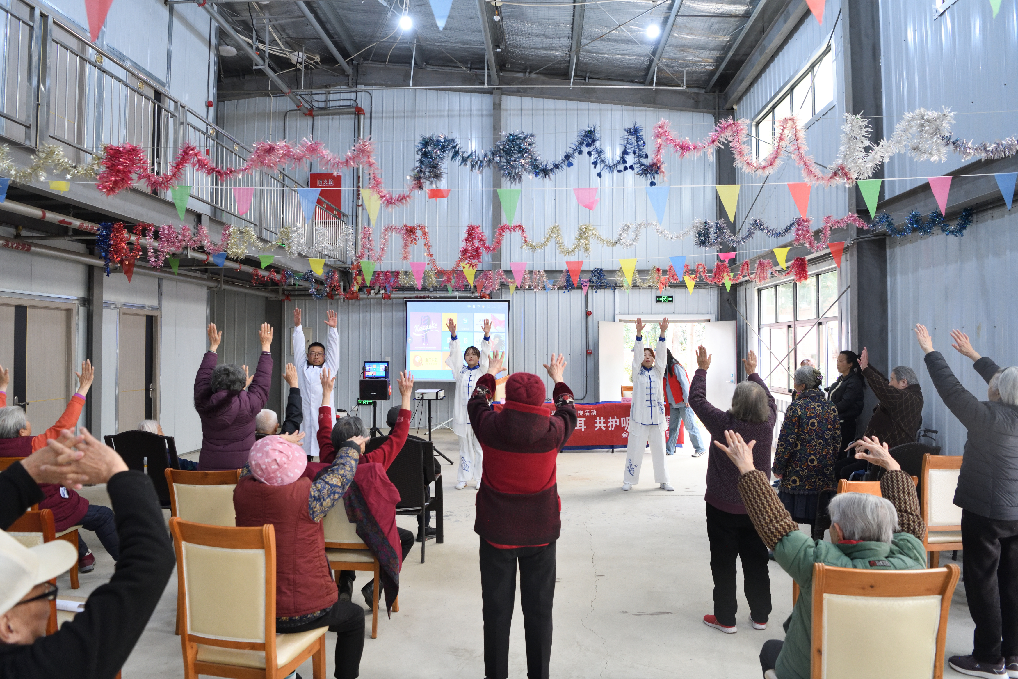 活动现场,围绕老年群体健康需求,志愿者们开展了春季养生与耳聋防护治疗健康知识讲座,普及科学养生与耳健康保护知识;免费为老人们检测血压、血糖、视力及听力,解答常见病、多发病的预防与诊疗疑问,讲解用药指导、慢病管理等实用内容。同时,志愿者们还教老人们跳起八段锦养生操,传递中医“治未病”养生理念,让传统养生方法融入老年日常保健。