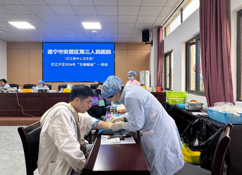 近日,在遂宁市安居区卫生健康局的统一组织下,遂宁市安居区拦江镇中心卫生院联合保石镇中心卫生院,共同开展拦江片区“2026年无偿献血活动”,两家医院干部职工踊跃参与,用热血践行医务工作者的责任与担当。