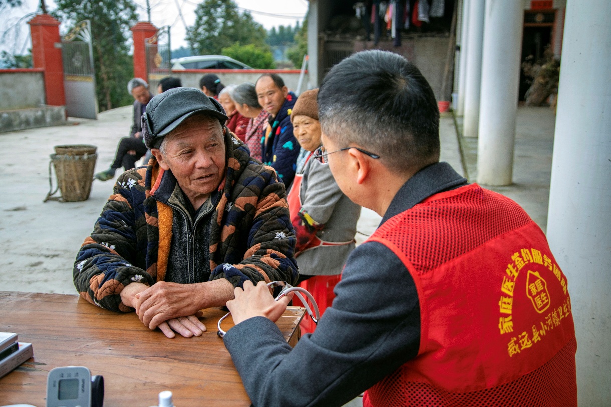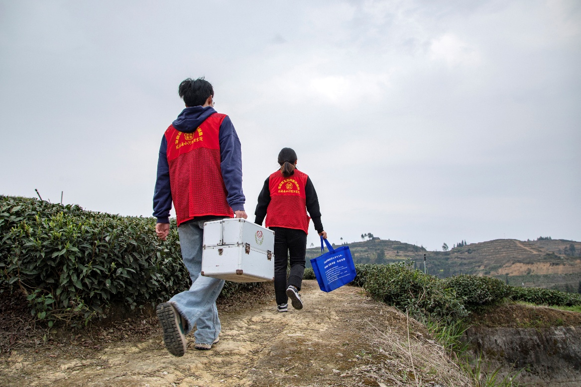 对行动不便的老人和不便离开茶场的村民,家庭医生团队走进周边农家小院开展上门服务。医护人员现场为村民诊病,免费赠送常用药品,解答头晕乏力、关节不适等常见问题,指导他们正确用药、科学养生。“采茶忙得没时间去医院,医生上门服务,测血压、送药品,太贴心了。”一位村民笑着说。
