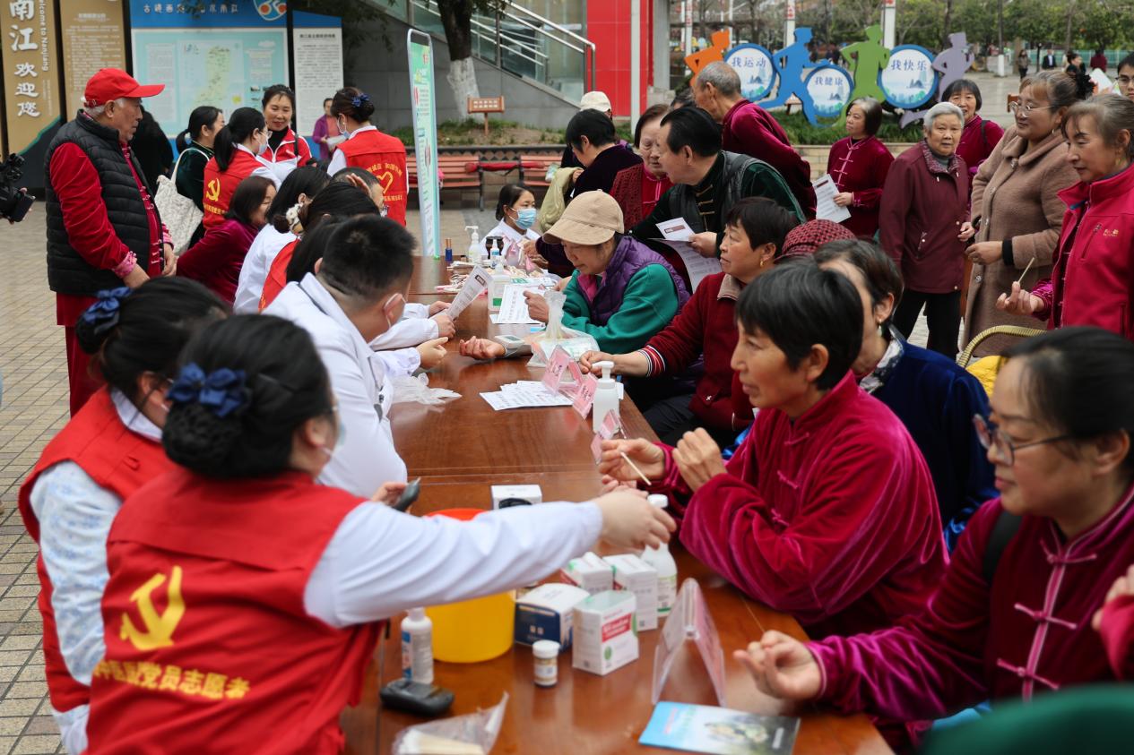便民服务点前秩序井然,现场免费为群众开展血压、血糖检测,及时排查基础健康指标。同时,结合中医特色优势,设置火龙罐、耳穴压豆等中医适宜技术体验区,并准备了中医药香囊免费发放,让群众近距离感受中医传统疗法与养生文化。(李佳珍)