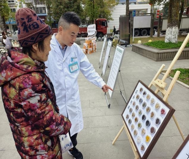 中医药文化展示区如一座中医药历史的小型博物馆。现场通过展示中医药历史典籍、传统器具,如针灸针、药罐、艾条等,以及道地药材标本,生动且全面地呈现了中医药文化源远流长的发展历程。居民们在这里驻足观看,认真聆听讲解,深刻感受到了千年国粹的深厚底蕴和独特魅力。