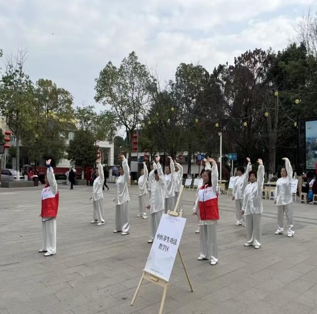 中医养生功法教学区里,专业教练现场演示并教学中医养生功法八段锦。教练一边示范动作,一边耐心讲解动作要领和养生功效。居民们跟着教练的节奏,认真学习每一个动作,感受着传统养生文化的精髓,体会到动静结合、强身健体的乐趣。