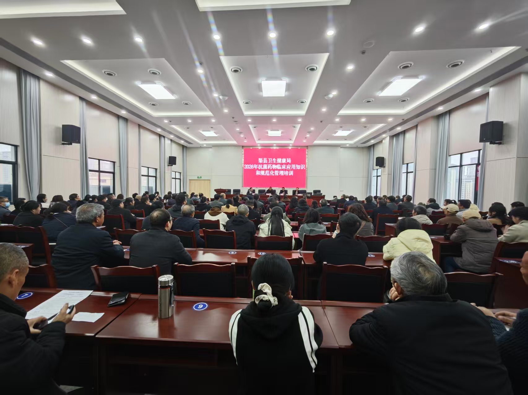 3月20日,渠县卫生健康局在县疾控中心举办“2026年抗菌药物临床应用知识和规范化管理培训班”,全县二级以下医疗机构抗菌药处方医师、处方调剂人员等相关医务人员共计340余人参加,县卫健局党委委员、副局长杨腾做动员讲话。