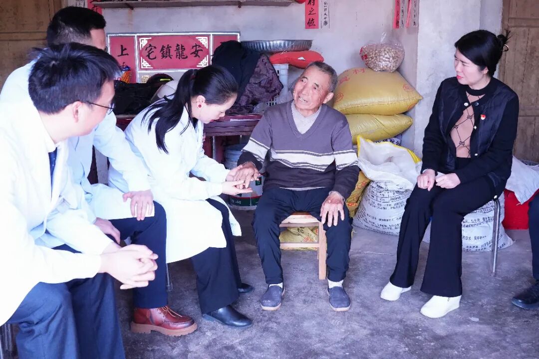 除了在卫生院集中服务,博士团还走进双马社区和青林村的困难群众家中。针对高血压、糖尿病等常见慢性病,专家们为群众讲解日常饮食、规范用药和居家监测要点,并送上慰问品。