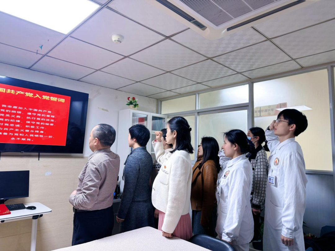 “我志愿加入中国共产党……”铿锵誓言在四川省第三人民医院会议室回荡。领誓人,是有着数十年党龄的老党员——陈光明同志。数十载从医生涯,他不仅以精湛的医术守患者健康,更以务实笃行的作风为医院的建设发展躬耕实干。这一次,是他最后一次以在职党员身份,带领支部同志重温入党誓词。