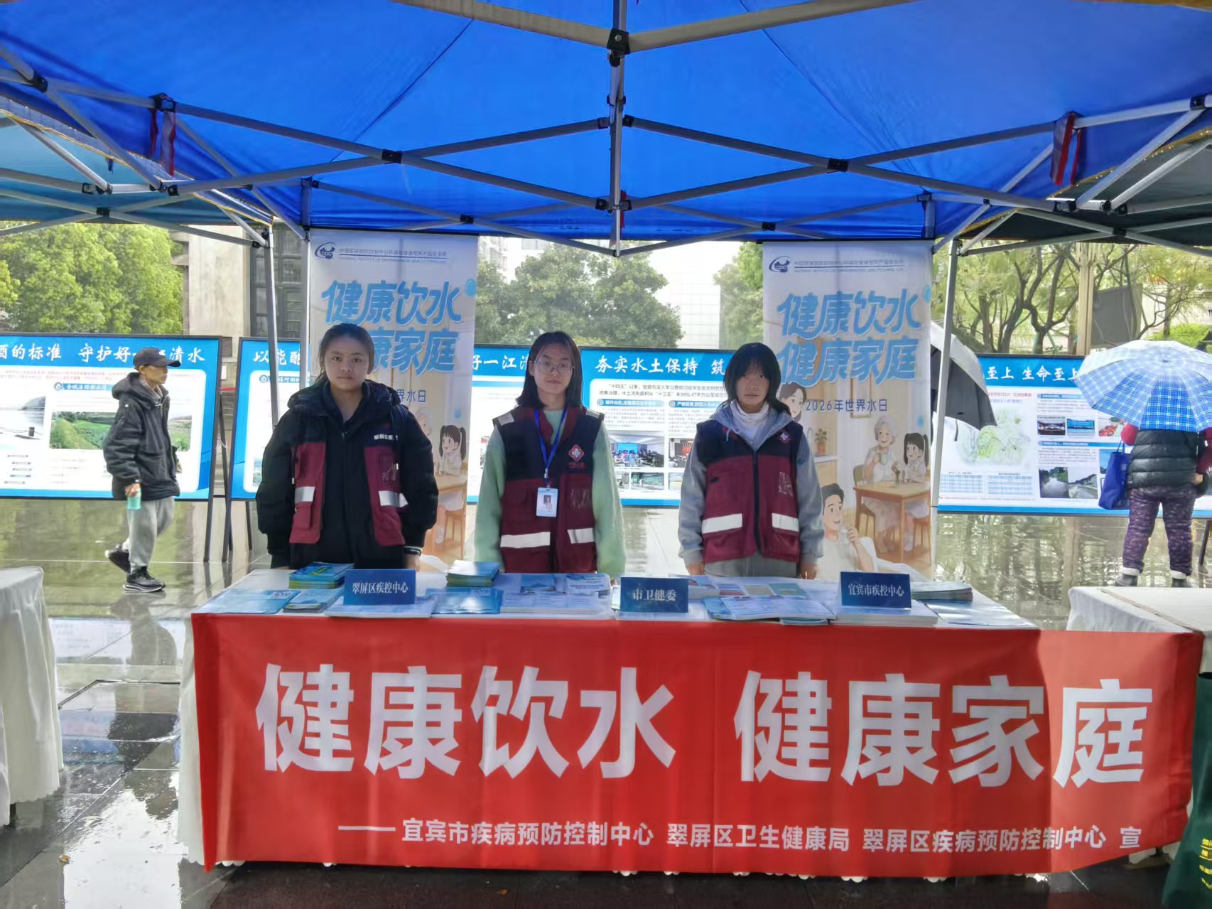 近日,为切实保障辖区群众饮用水卫生安全,普及科学饮水知识,宜宾市疾病预防控制中心、翠屏区疾病预防控制中心、翠屏区水利局等多部门联合在钟鼓楼广场开展以“健康饮水 健康家庭”为主题宣传活动。