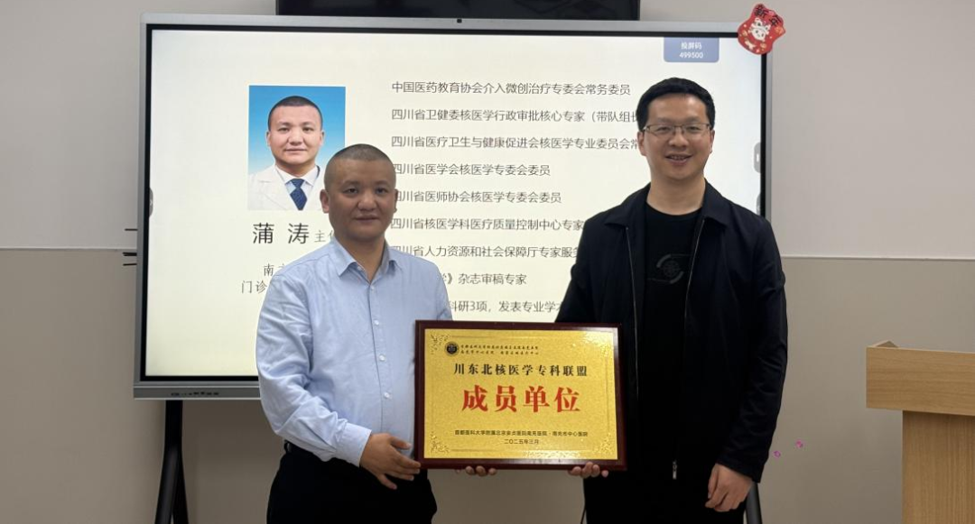 蒲涛代表川东北核医学专科联盟为南部县人民医院正式授牌。此次授牌标志着医院正式加入川东北核医学专科联盟,将进一步借力联盟优质资源,推动核医学技术在泌尿系肿瘤等疾病中的普及应用,实现优质医疗资源下沉,让县域群众在家门口即可享受高水平、同质化诊疗服务。