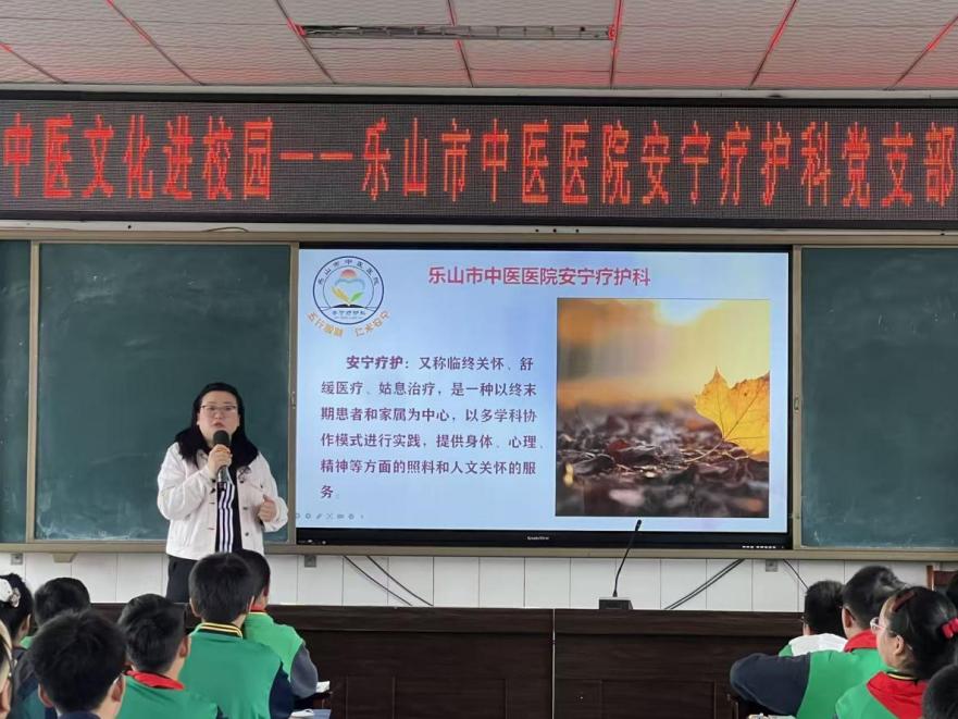 活动中,乐山市中医医院安宁疗护科党支部书记鄢静,用温暖而专业的语言,向孩子们阐述了生命关怀的深刻意义,让医学的人文温度在校园中流淌。